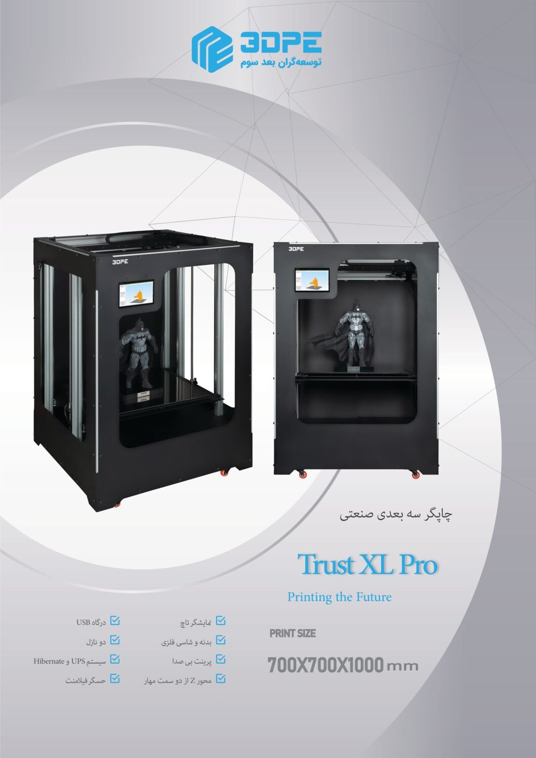پرینتر سه بعدی تراست ایکس ال پرو دارای گارانتی ۱۸ ماهه و خدمات پس از فروش ۵ ساله می باشد.